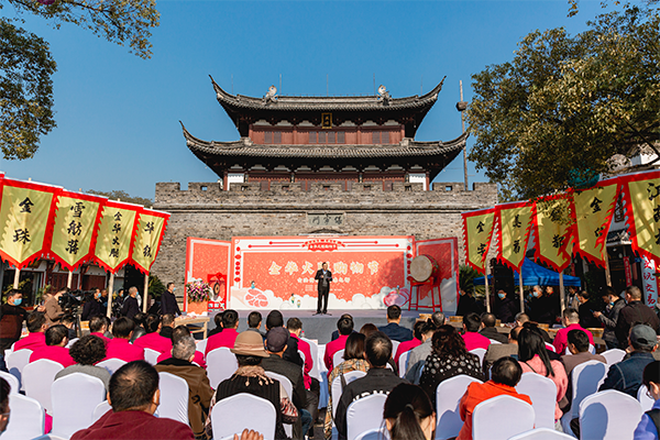 “春生夏長(zhǎng),秋收冬藏,小雪,冬日暖陽(yáng),金華火腿腌制開(kāi)場(chǎng)……”11月27日,一字一句、鏗鏘有力的祭文在金華古子城保寧門(mén)前回蕩。