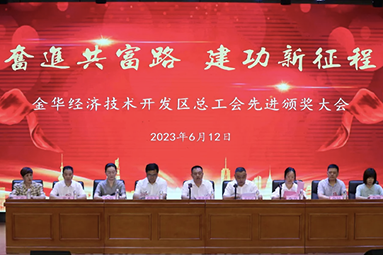 日前,6月12日下午,金華開(kāi)發(fā)區(qū)總工會(huì)在李漁小學(xué)報(bào)告廳召開(kāi)“奮進(jìn)共富路,建功新征程”先進(jìn)頒獎(jiǎng)大會(huì)。經(jīng)申報(bào)、推薦、審查、評(píng)審和公示等環(huán)節(jié),我單位陳順通、姜濤二位員工榜上有名。生產(chǎn)副總監(jiān)陳順通被授予2023年度“八婺金匠”榮譽(yù)稱(chēng)號(hào),生產(chǎn)副總監(jiān)姜濤被授予2023年“金開(kāi)工匠” 榮譽(yù)稱(chēng)號(hào)。
