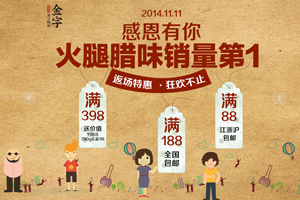 入了12月的江南,空氣中總會飄散著一股似近似遠(yuǎn)的肉香味,勾人魂魄到直咽口水。窗檐下懸掛的香腸臘肉有一種“年之將近”的即視感,因?yàn)槟蔷褪强痰焦亲永锏哪晡栋?。就算時代再變化,“小雪腌菜,大雪腌肉”的習(xí)慣依然被懂得生活的人代代傳承著。2014年的金字天貓旗艦店雙12來了,為您準(zhǔn)備的好臘味上新,十二道臘味年前抄底價。春運(yùn)車票已經(jīng)可以買了,臘味也同樣:回家過春節(jié),你準(zhǔn)備好了沒有?