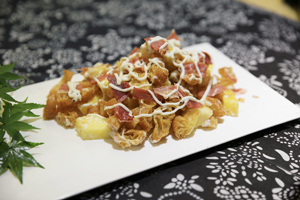 假如火腿有靈性,相信最愿意落在一位能將它千變?nèi)f化的大廚手中。就像我們一樣,在遇到真正的高手時,也總難掩興奮和激動。?華小富,一位從16歲就開始做廚師,至今已經(jīng)有了十幾年從業(yè)經(jīng)驗(yàn)。打通我們報名電話時,他說的第一句話是:“讓我們指點(diǎn)你們一下,怎么做好火腿菜?!蹦欠N隔著電話就能清晰感受到的自信。? 不過親眼見到了,才知道這種自信的確有道理:從冷菜到熱菜,從主食到甜品……