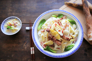 征集消息發(fā)出至今,已有不少市民愿意一秀才藝,其中一位叫楊哥的火腿菜做法,確實(shí)也挺讓人腦洞大開。楊哥叫楊春鋼,有著20多年的廚師經(jīng)驗(yàn)。目前在市區(qū)開了一家籮籮酸湯魚的他,對火腿頗有研究,早在多年前,就開始在外地推廣金華火腿。在楊哥看來,火腿是個好東西,作為一種很好的烹飪食材,它有提鮮增香的作用,還有很高的營養(yǎng)價值,具有多種氨基酸和微量元素,有促進(jìn)傷口愈合等作用……